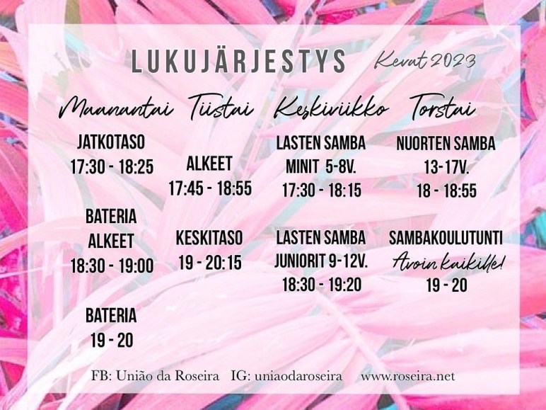 Lasten opettajat toivottavat kaikki uudet (ja vanhat) harrastajat tervetulleiksi Roseiran sambatuntien pyörteisiin!